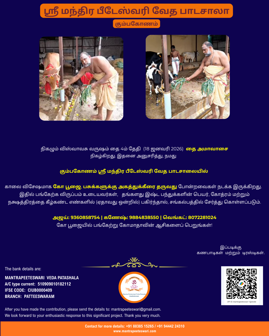 VEDA POASHAKAM JAGATHRAKSHANAM